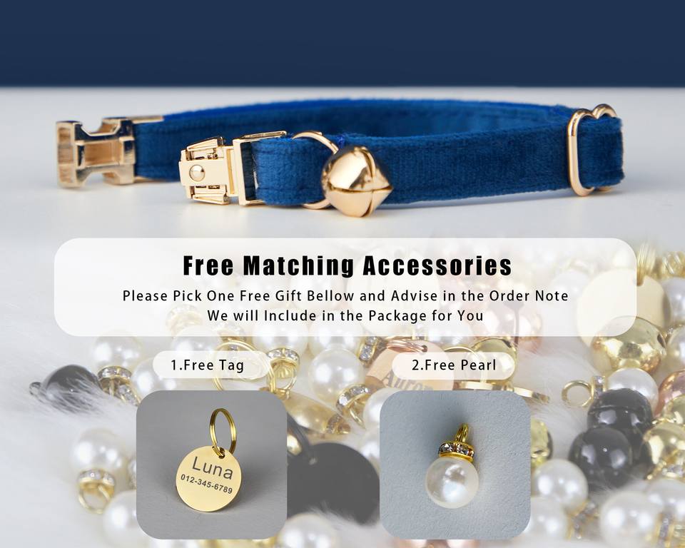 Royalblue Veet Personalized Cat & Small Dog Collar Bow Tie Leash Set,Free Engraved Kitten Puppy Name Tag,Gold Bell,Pet Birthday