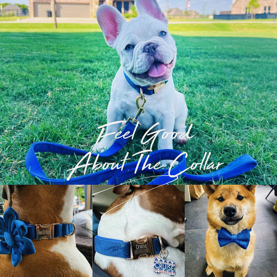 Royalblue Veet Personalized Do Collar Bow Tie Leash Set,Custom Enraved Pet Name Metal Buckle, Birthday Puppy Gift,Free