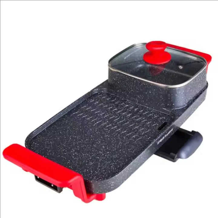 Royalstar 1200W Multifunction 2-in-1 Electric Skillets Hot Pot & Smokeless Indoor BBQ Grills with Temperature Control