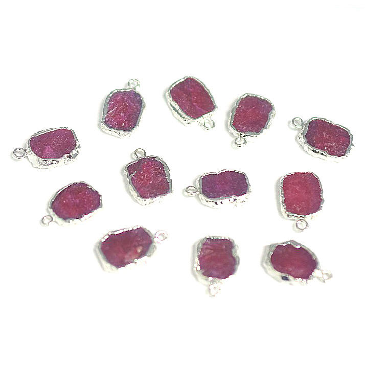 Ruby Corundum Flat Rectangle Slice Shape Silver Plated Pendant