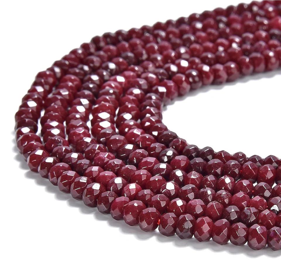 Ruby Dyed Faceted Beads Rondelles Gemstone Beads Strand Polished Red Stone Beads for Handmade Jewelry Making Wholesale