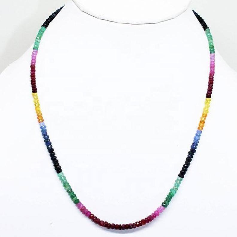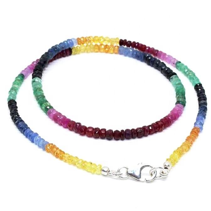 Ruby/Emerald/Sapphire Multi Sapphire Gemstone Necklace Rondelle Cut Beaded Bracelet Beads Excellent Quality Natural