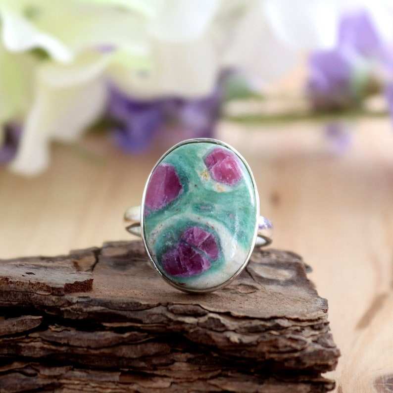 Ruby Fuchsite Oval Gemstone Ring Sterling Silver Unique Handmade Jewelry Elegant Natural Stone Design Size 9 Gift for Her