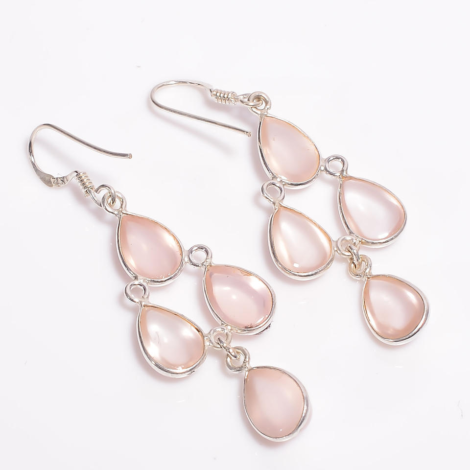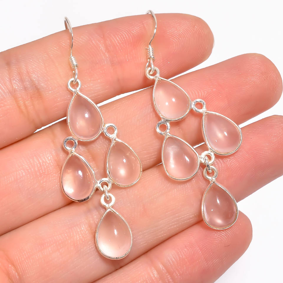 Ruby Gems 925 Sterling Silver Elegant Dangle Drop Earrings Classic Style Rose Quartz Gemstone Unisex Women's Anniversary Jewelry
