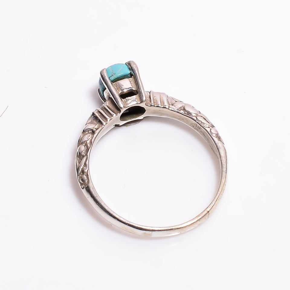 Ruby Gems RS-237 925 Sterling Silver Classic Wedding Ring Set Cut Turquoise Gemstone Engagement Anniversary Party Fine Rings