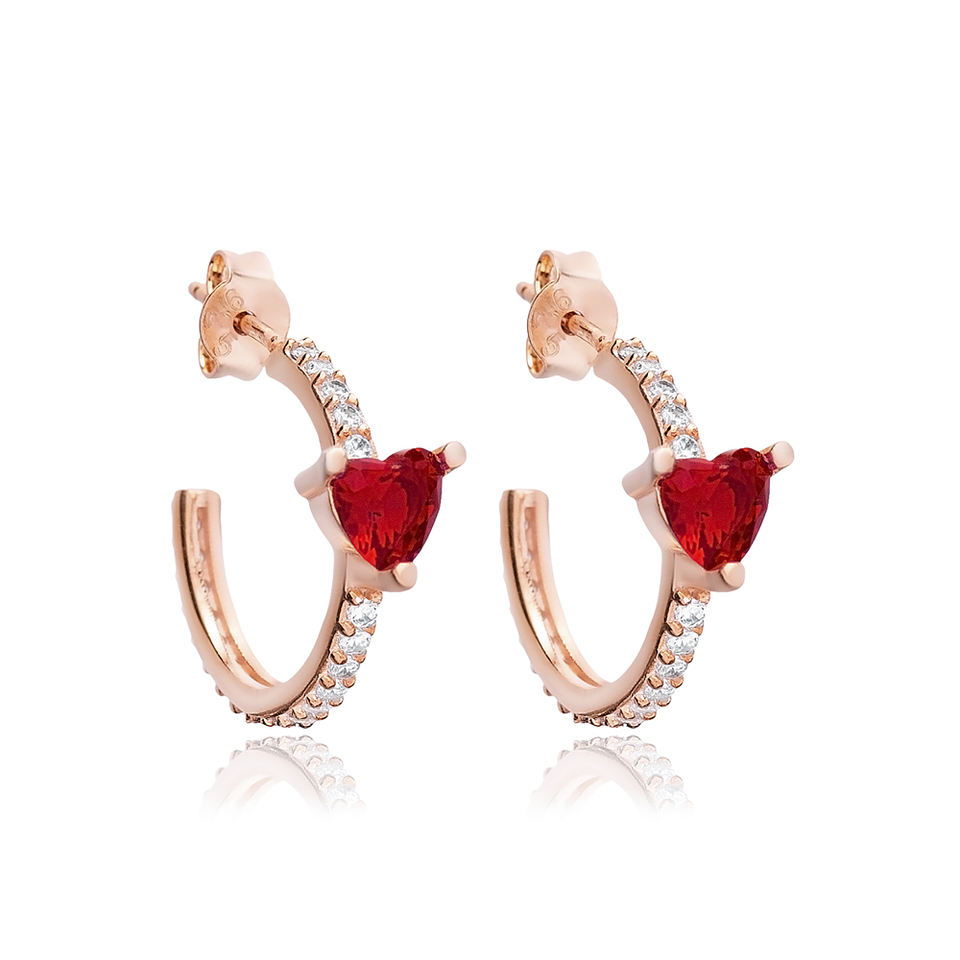 Ruby Heart Shape CZ Stone Hoop Earring Wholesale 925 Sterling Silver Women Jewelry