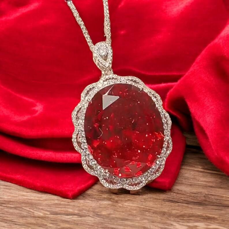Ruby Pendant Necklace Geometric Art Deco 925 Sterling Silver 14K Gold Plated Elegant Fine Jewelry Gift For Her