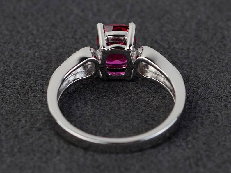 Ruby Ring Silver Cushion Cut Red Gemstone Ruby Engagement Ring July Birthstone Fine Jewelry For Women