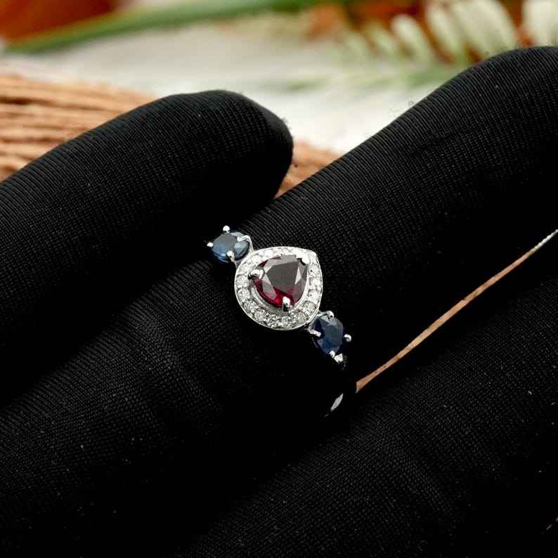 Ruby Sapphire & Zircon Ring Fine Jewelry Birthstone Elegant Design Custom Ring for Women