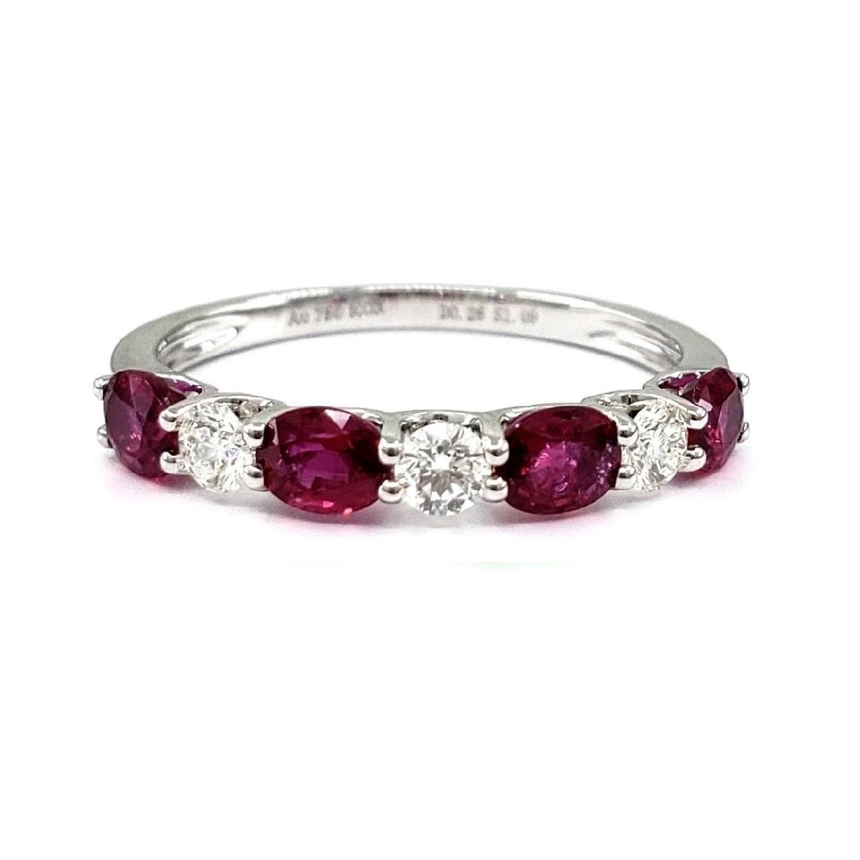 Ruby Stackable Anniversary Wedding Half Band Ring 18k Solid White Gold Real Diamond Eternity Wedding Ruby Band Rings for Women