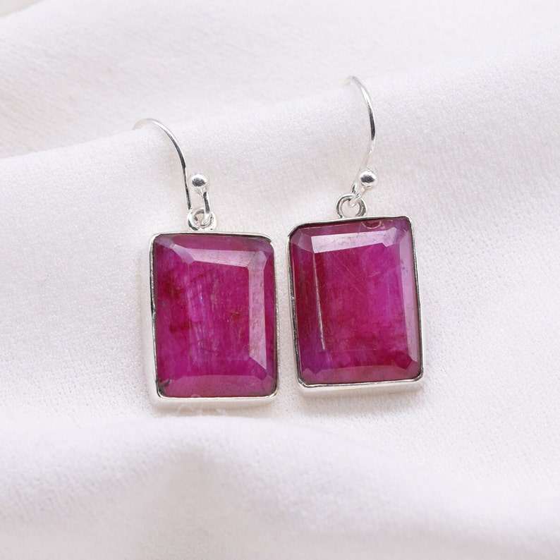 Ruby Sterling Silver Stud Earrings Faceted Rectangle Gemstone Handmade Jewelry Natural Stone Cute Gold Plated Gift