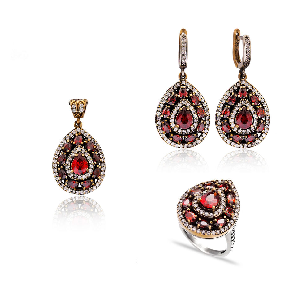 Ruby Stone Authentic Design Set Wholesale Turkish Handcrafted Silver Set Women Trendy Fashion