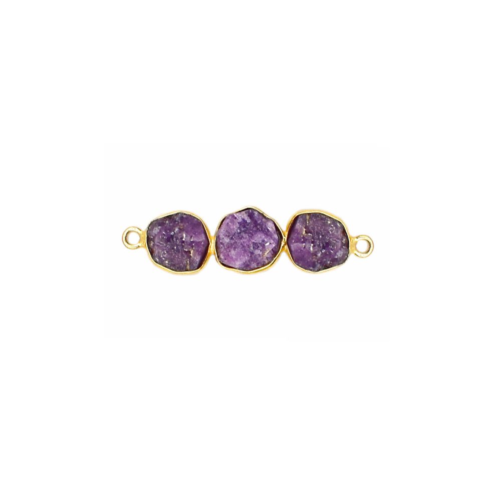 Ruby Three Stone Connector Gold Vermeil Sterling Silver Bezel Set Raw Gemstone Handmade Jewelry Making Charm for Her