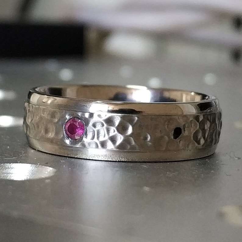 Ruby Titanium Hammered Wedding Ring Engagement Ring Brushed Satin 6mm Red Ruby Band Durable Stylish Ring