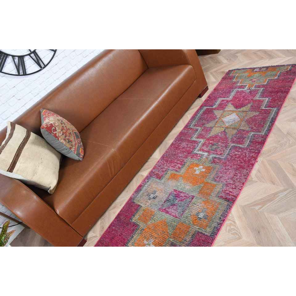 Rug, 2.3x9 ft Turkish Rug, Red Southwestern Rug Wool