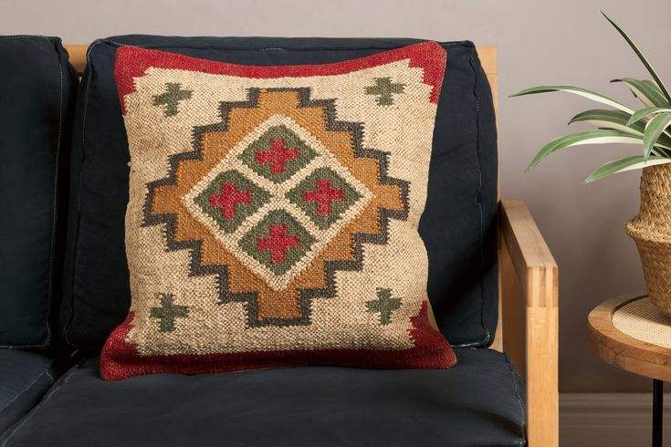 Handmade Modern Square Organic Wool Cushion Cover Abstract Geometric Pattern Reversible Eco-Friendly Customizable for Home Use