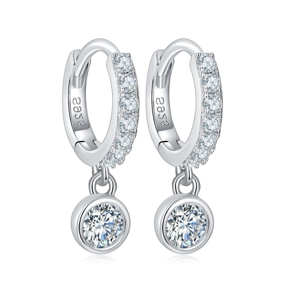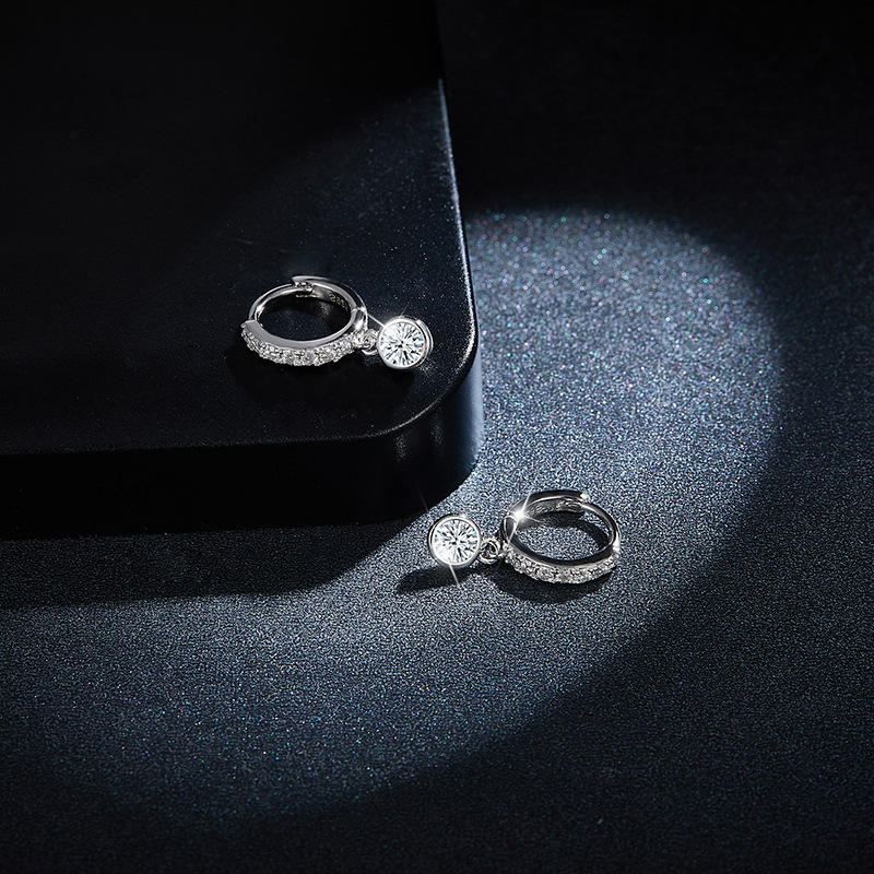 RuiXuan Boutique Moissanite Stone Hoop Casual Sterling Silver Jewelry Earrings