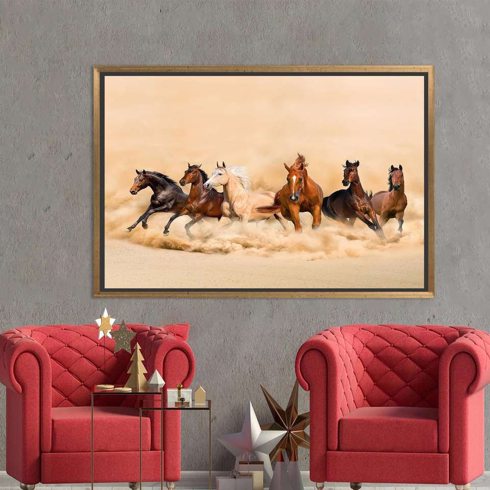 Running Horses Canvas Print: Elegant Farmhouse Animal Wall Art,GOLD FRAMED CANVAS