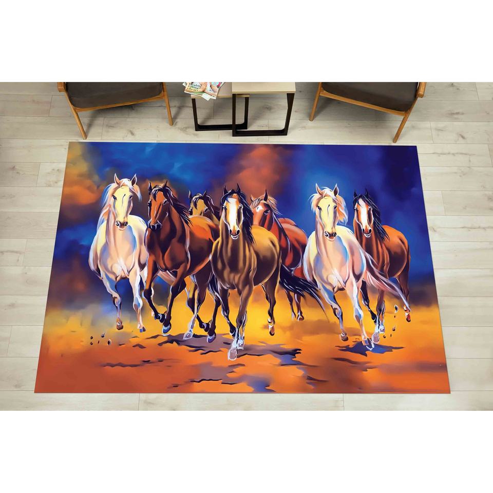 Running Horses Painting Rug: Non-Slip Soft Corridor Rug,Chenille Rug
