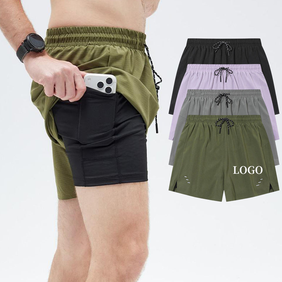 Running Shorts 2 Layers Blank Custom Logo Breathable Quick Dry High Quality Polyester Shorts for Men
