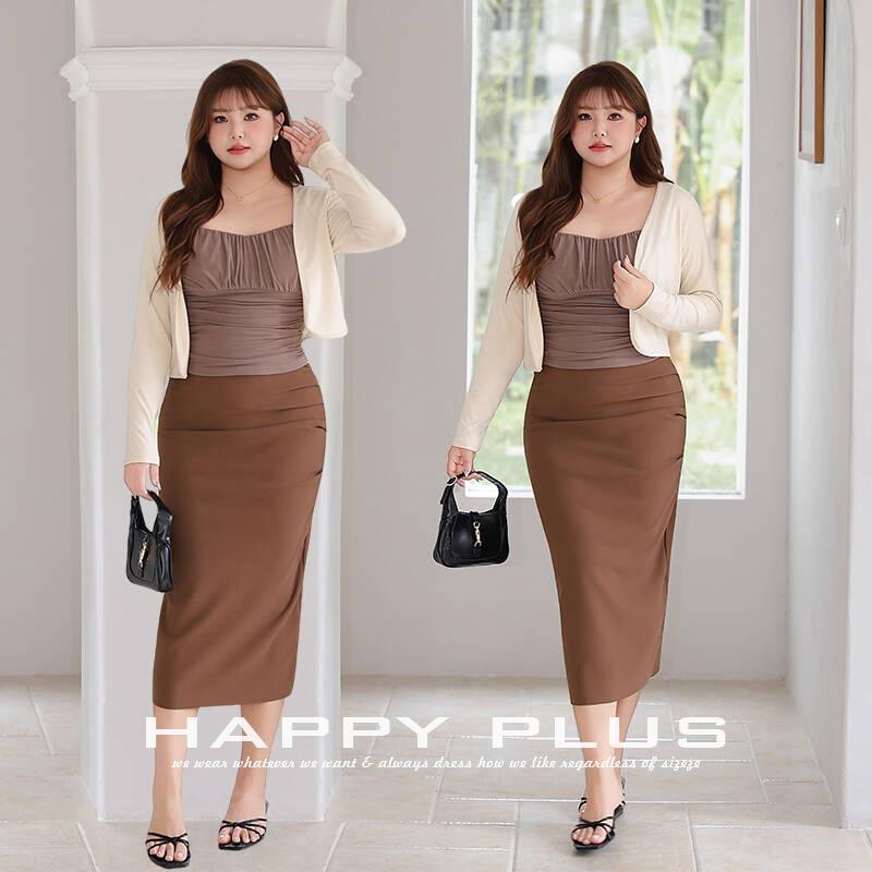 Runqi Women's Plus Size Ruched Camisole Top Set Tea Coffee Solid Color Knitting With Label And Tags