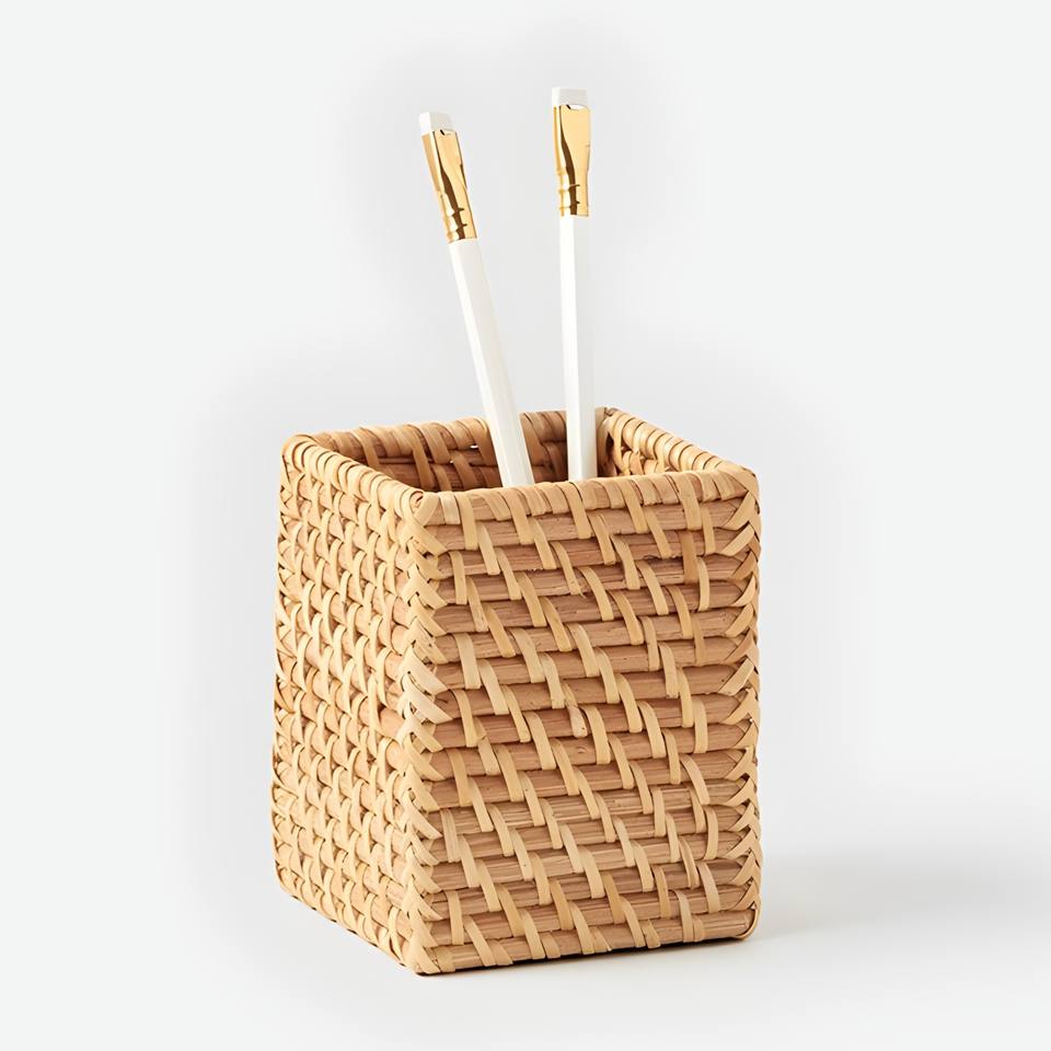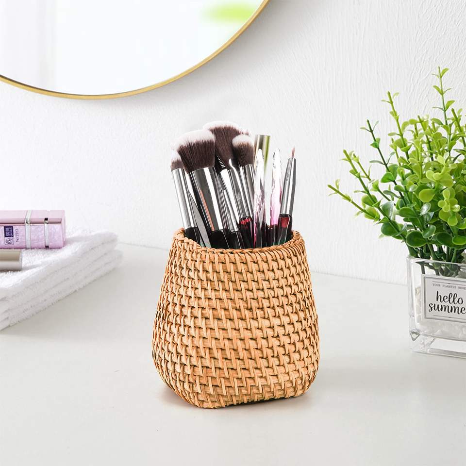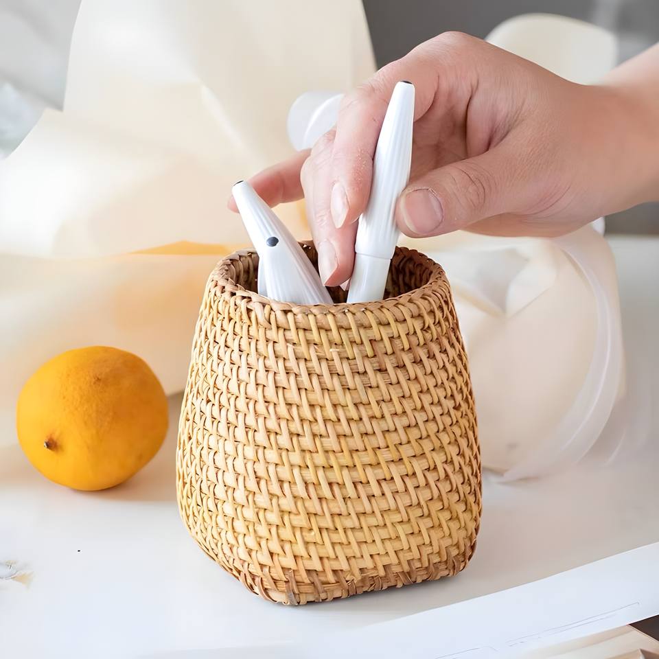 Rural Style Rattan Pencil Display Holder Desk Organizer Basket Natural Material Handmade Pen case Stand for Office