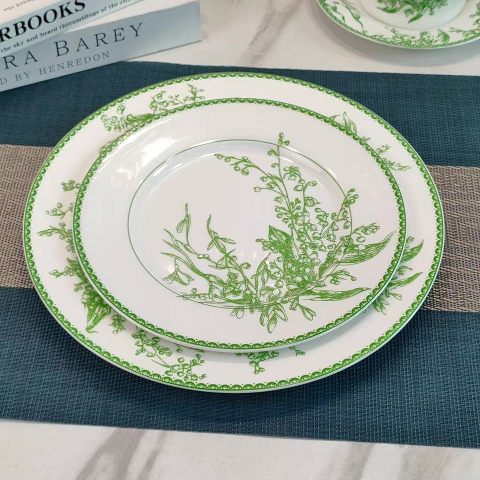Rush for Green Bell Orchid Exquisite Plate and Cup Set Ceramic Dinner Set