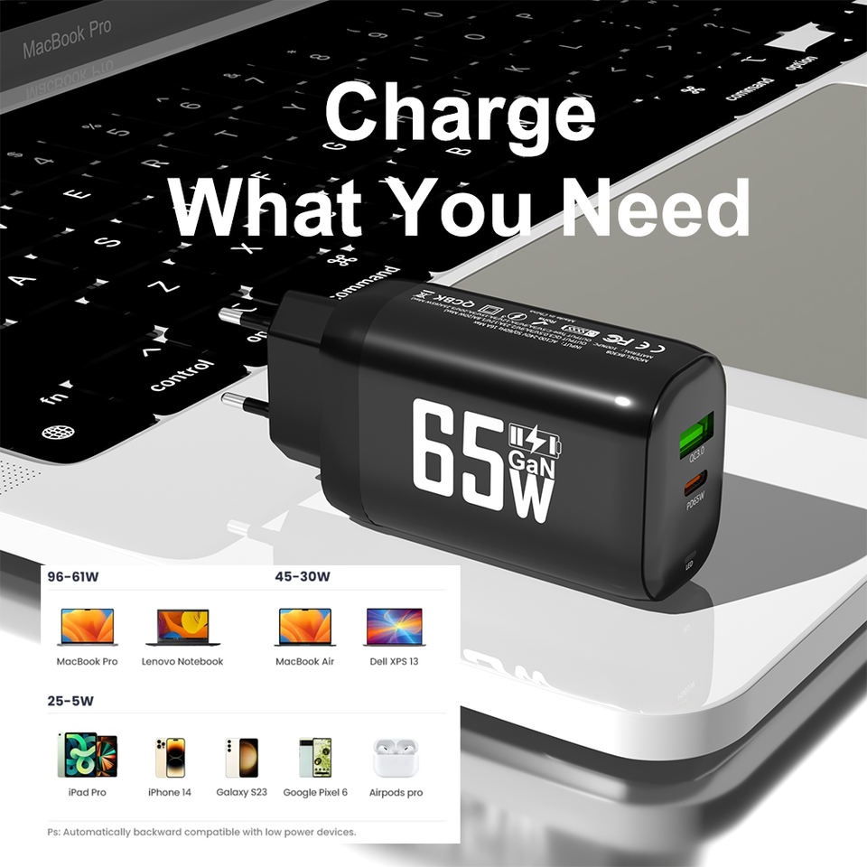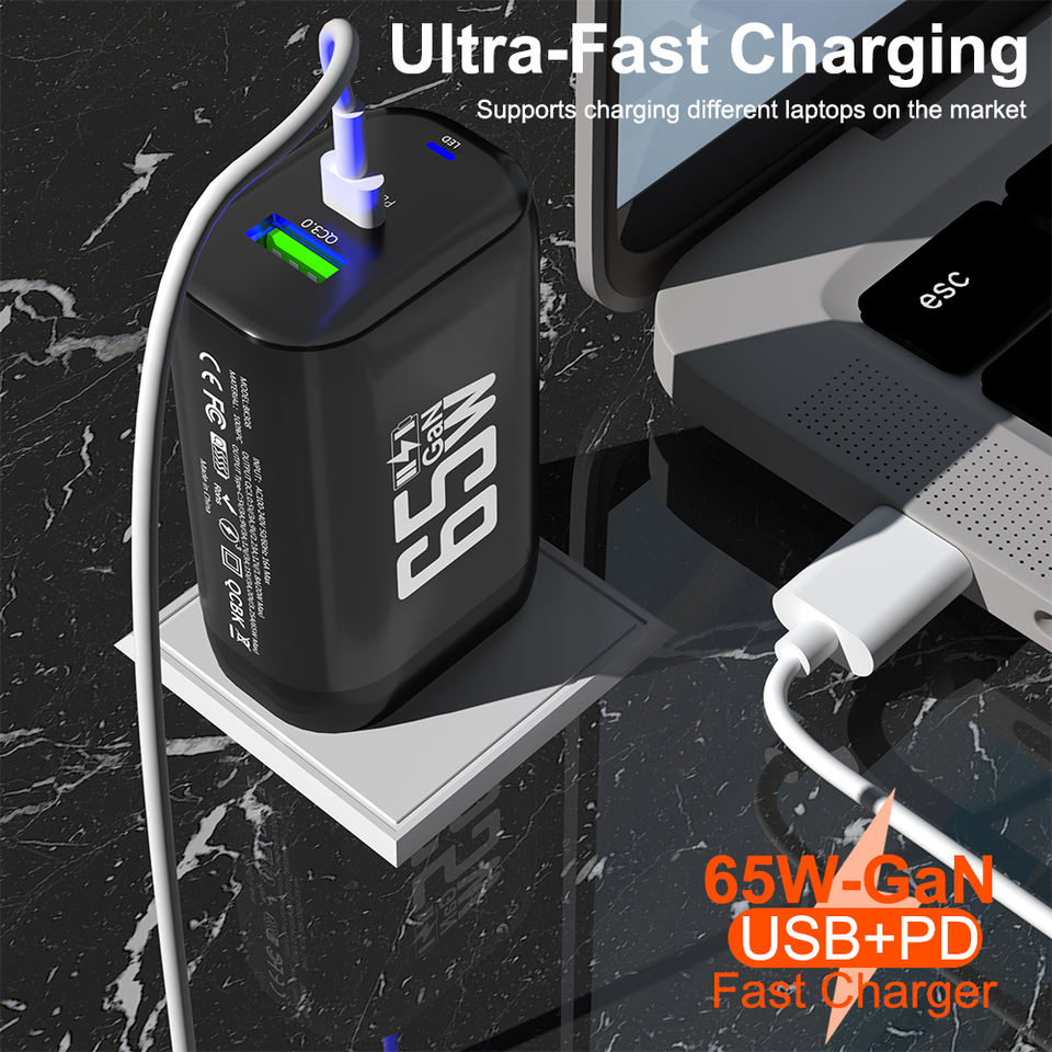 Russia Wholesale Products Free Sample 65W GaN Usb C PD Fact Charger Dual Chargers Adapter for iphone Charger Cable Cargadores