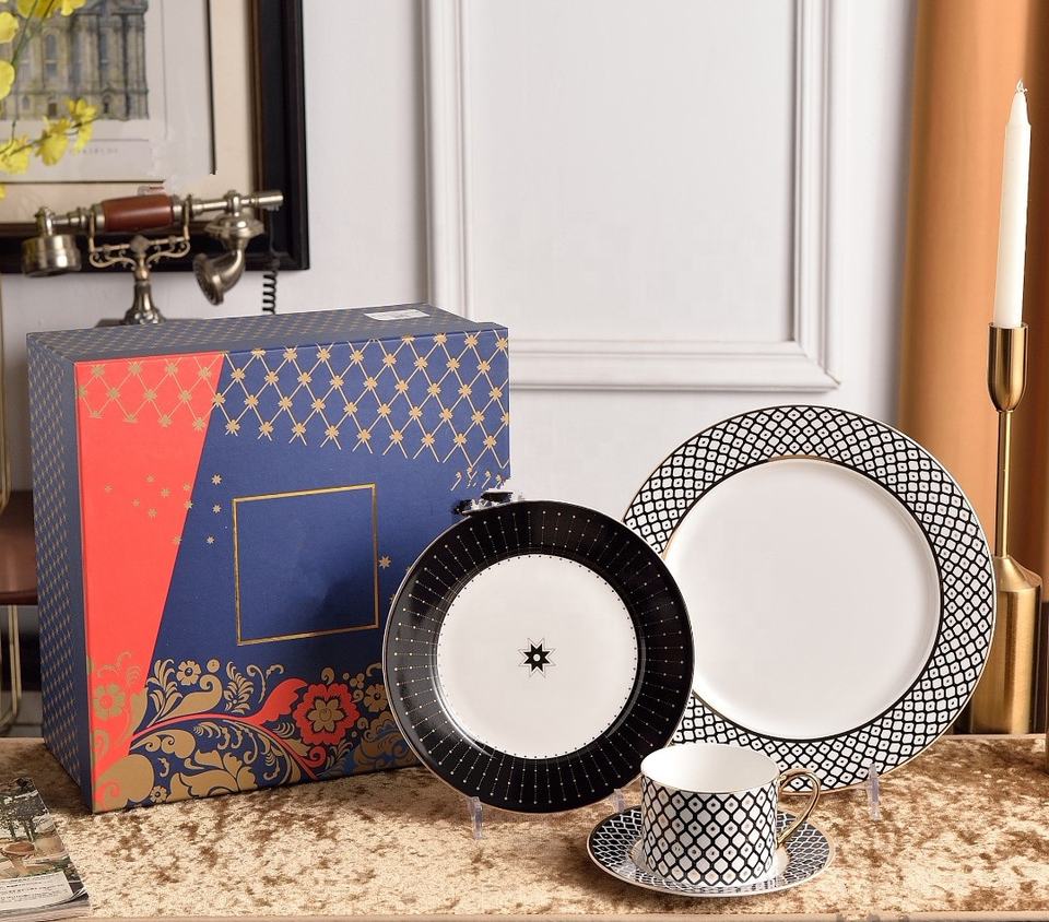 Russian Royal Style Luxury Eco-Friendly Bone China 4-Piece Dinnerware Set for Wedding Party Restaurants