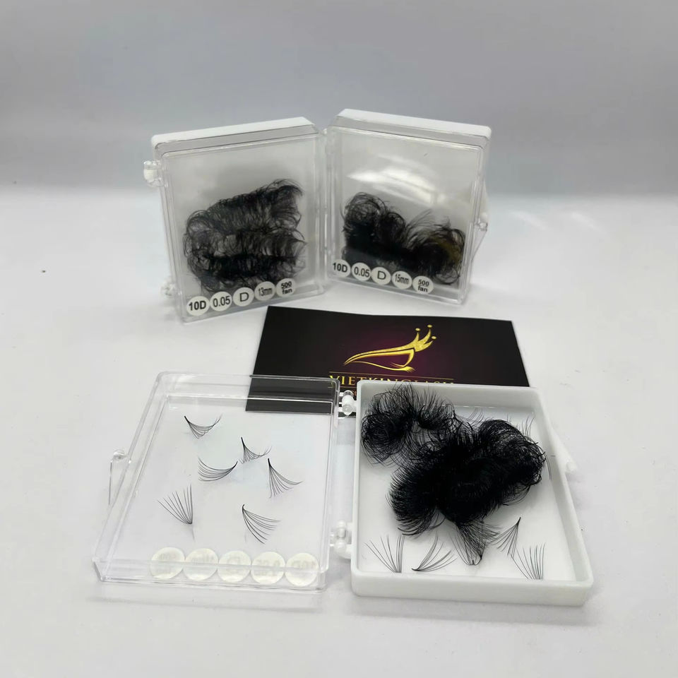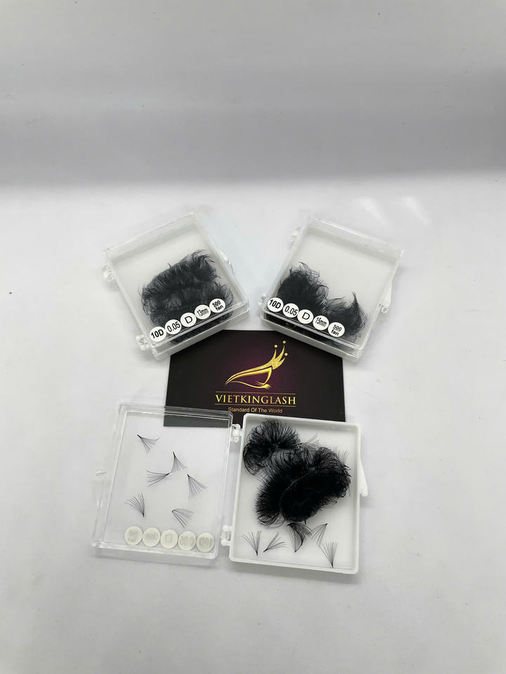 Russian Volume Lashes 10D Premade Fans Short Stem 0.05mm Matte Black Cashmere Lash Trays Private Label High Quality Supplies