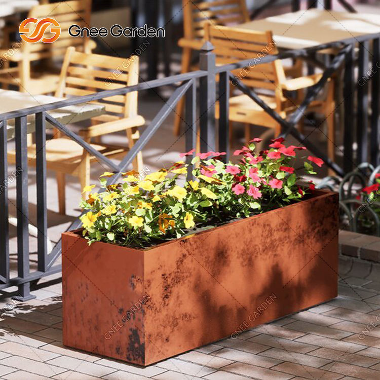Rust Color Corten Steel Planters Removable Rectangle Flower Pots for Garden