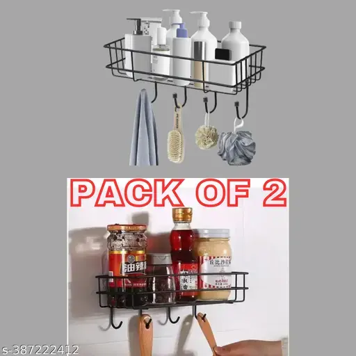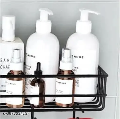 Rust-Free Metal Wall Shelf for Bathroom & Kitchen No Drill Shampoo Holder Decorative Art Style Storage Rack
