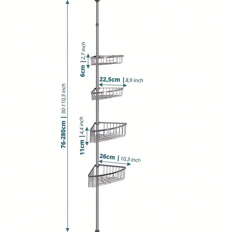 Modern Rust-Proof Hotel Corner Shower Caddy Shelf Adjustable Iron 4 Tier Bathroom Shelf