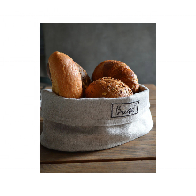 Rustic 100% Cotton Bread Basket Name Embroidered Washable Eco Friendly Organizer Keeps Bread Fresh Dining Table Gift Wholesale