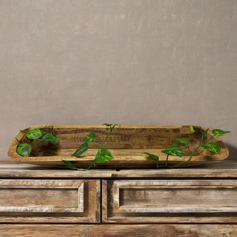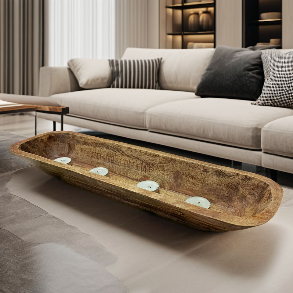 Rustic 100% Natural Eco-Friendly Mango Wood Rectangle Dough Bowl High Quality Handmade Home Decor Wax Filling Candle Jar Ins