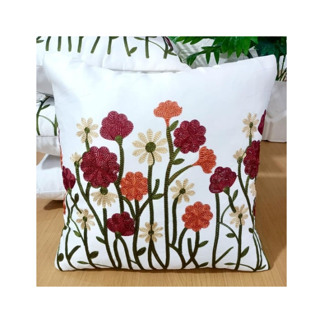 Rustic 18x18in 100% Cotton Triple Toned Embroidered Dobby Cushion Eco Pigments Dyed For Bulk Export & OEM ODM Rapid Shipping