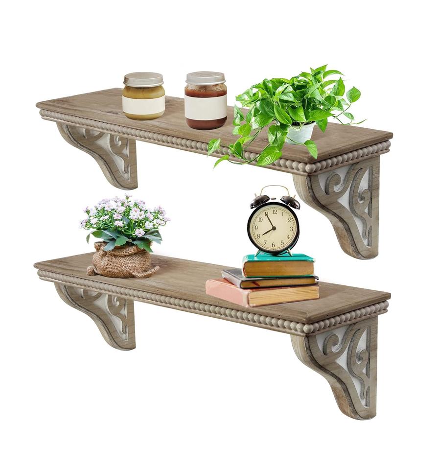 Rustic 24 Inch Long Wood Floating Shelves for Wall Hanging Farmhouse Large Set of 2 Boho Bedroom Bathroom Kitchen Storage Mount