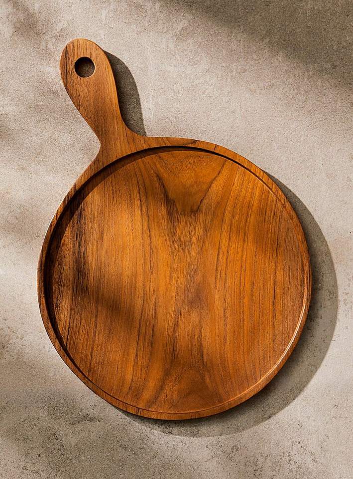 Rustic 25cm Solid Wood Dinner Plates Sturdy Wood Pizza Plates Round Acacia Serving Tray for Food