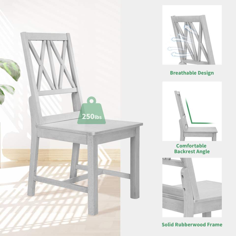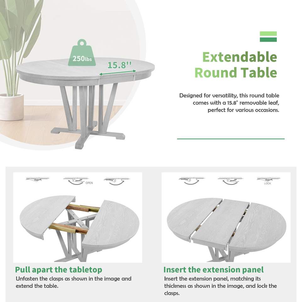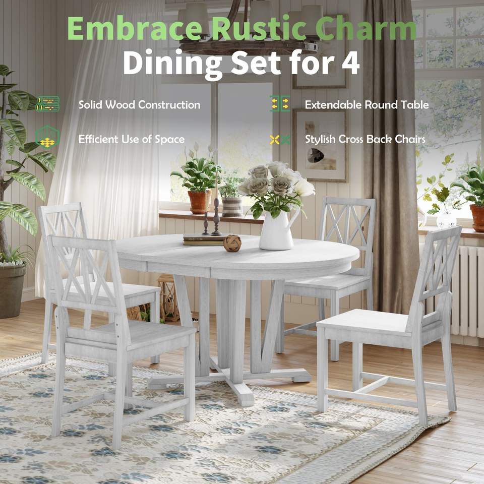 Rustic 5-Piece Extendable Dining Table Set Round Trestle Table and 4 Cross Back Dining Chairs for Kitchen or Dining Room