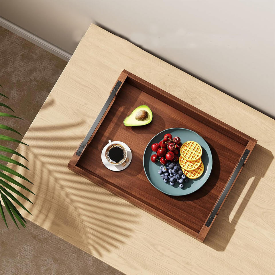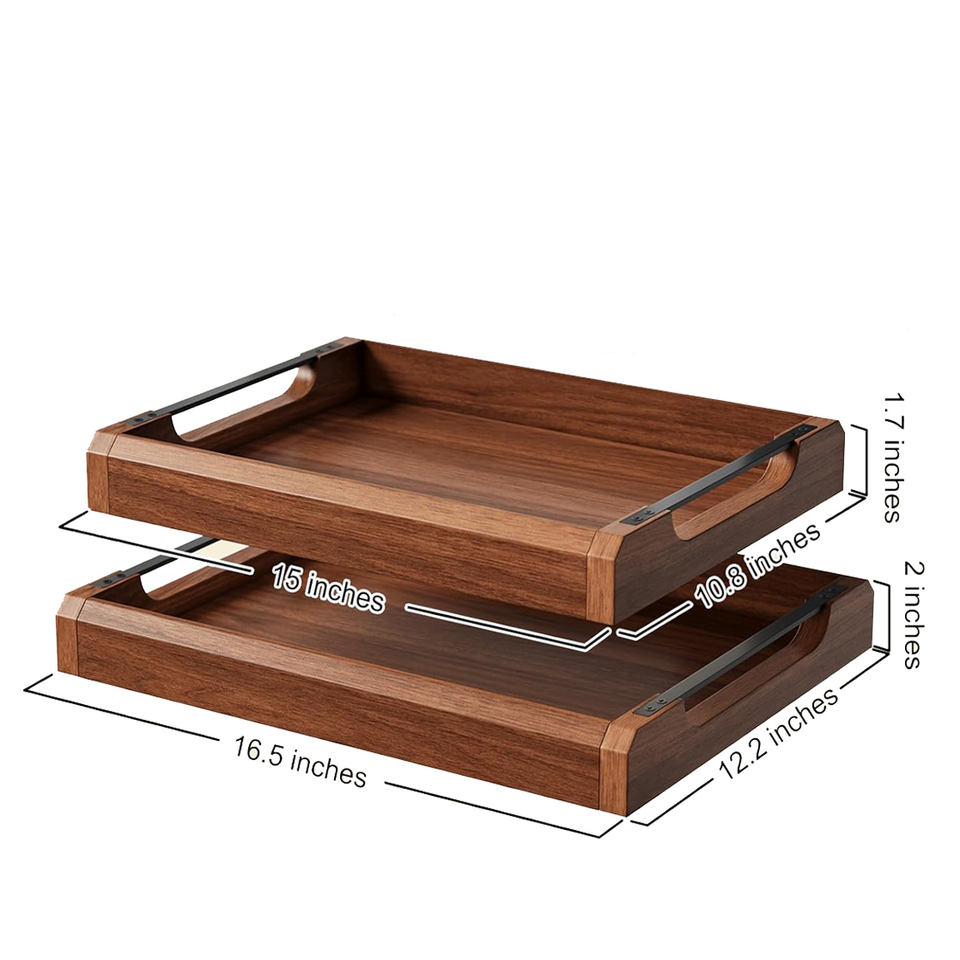 Product Name:Acacia Wood Serving Tray with Metal Handles l Set of 2