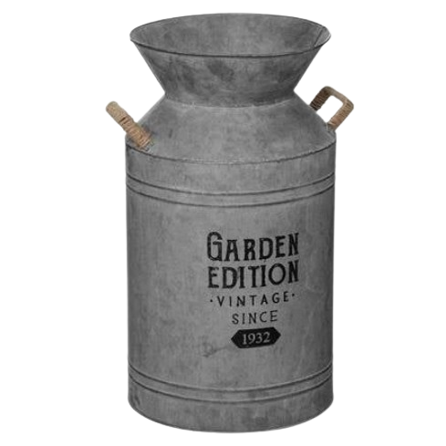 Rustic Antique Tin Vase with Wooden Handle Galvanized Metal Farmhouse Home Garden Flower Pots & Planters Milk Can Jug for Decor