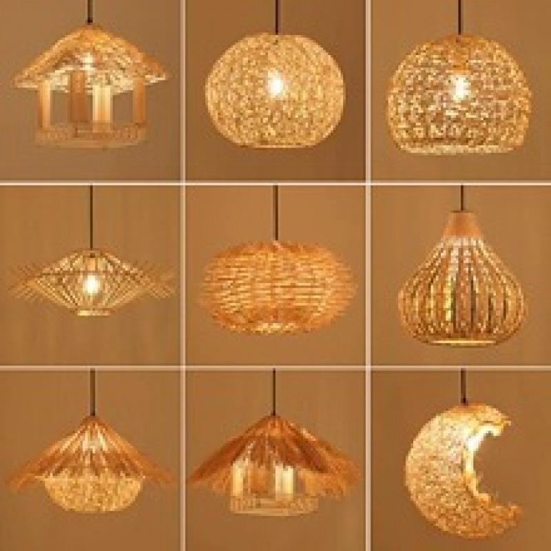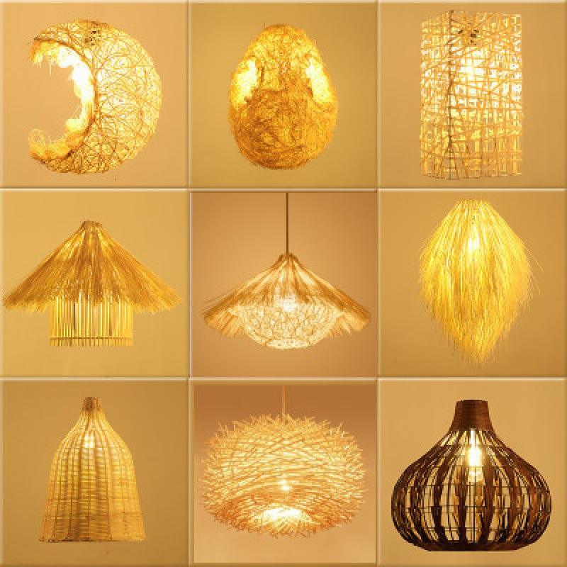 Rustic Bamboo Rattan LED Pendant Light Round E27 Single Head Chandelier For Home Living Room Dining Room