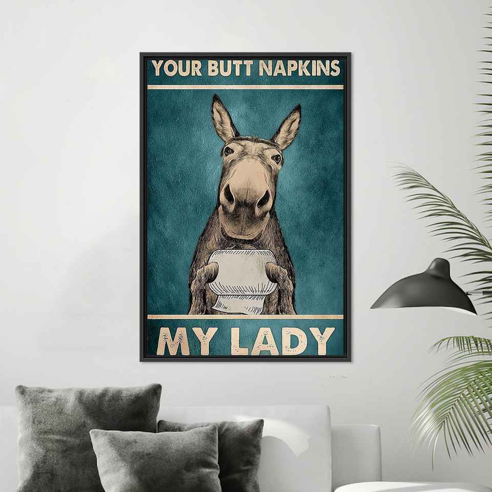 Rustic Bathroom Canvas Art - Funny Donkey Humor Print,Black Framed