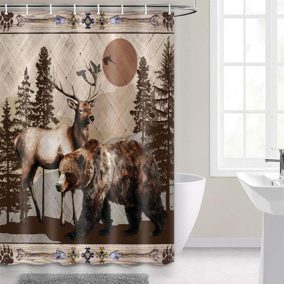 Rustic Bear Shower Curtain Country Wild Animals Forest Plank Background Water-Proof Bath Decor for Home Bathroom