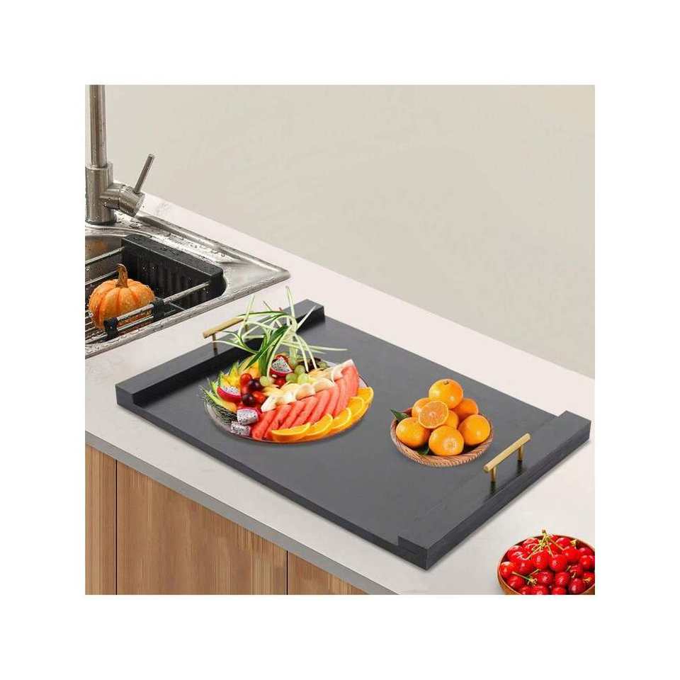 Rustic Black Kitchen Serving Tray Stove Top Cover and Noodle Board for Gas/Electric Stove MDF Decorative Cooktop