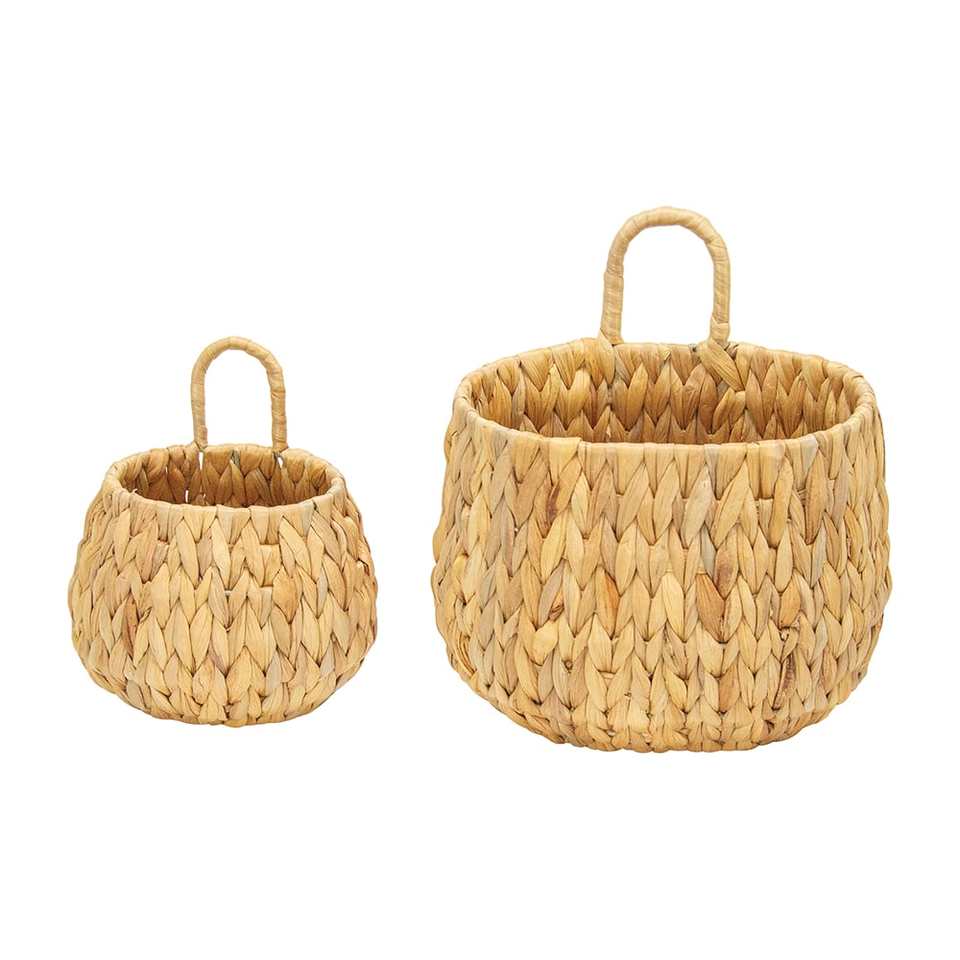 Rustic Bohemian Standing Mini Straw Basket Planter Sturdy Durable Hand Woven Water Hyacinth Flower Pot for Home & Garden