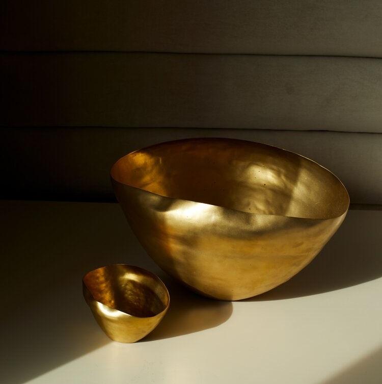 Rustic Brass Luxury Round Serving Bowl with Dual Tone Metal Design and Speckled Texture for Table Servware