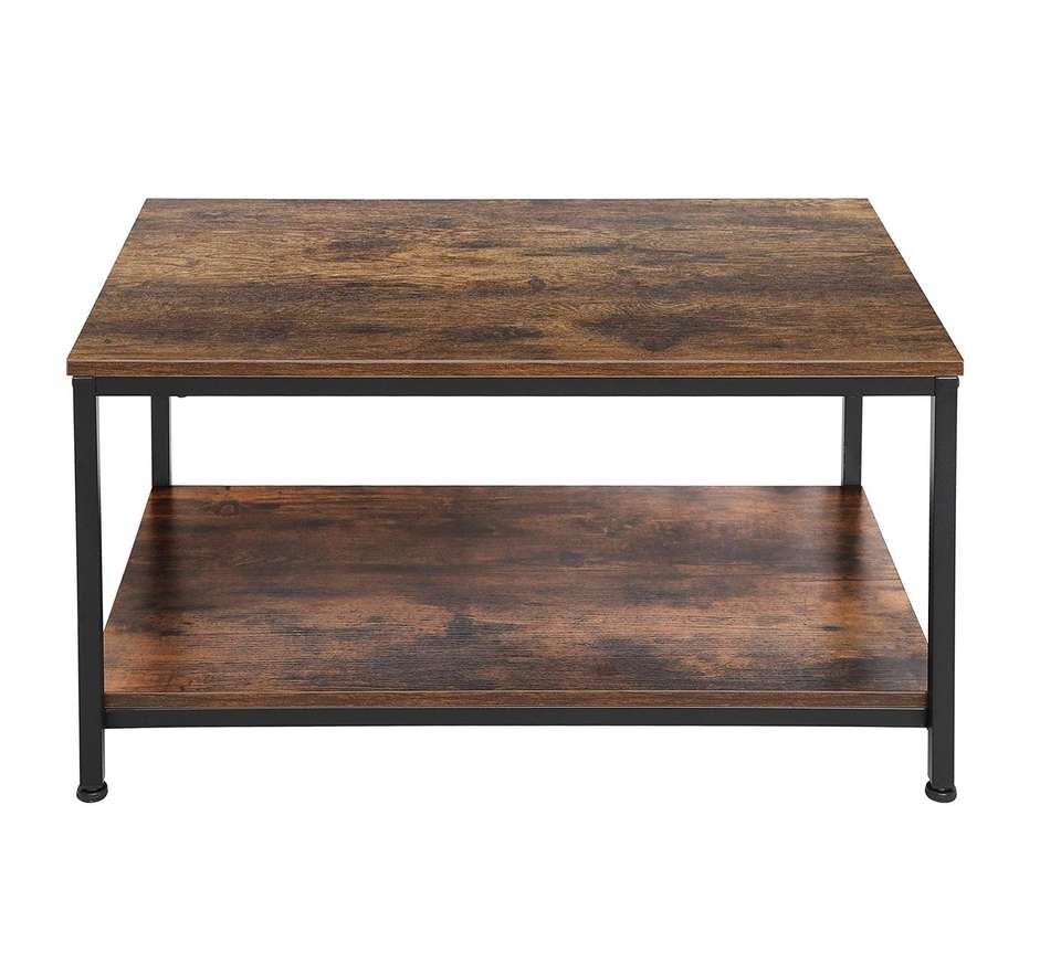 Rustic Brown Coffee Table with Storage Shelf Rectangle Wood Metal Center Table for Living Room Small Apartment Stand