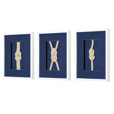 Rustic Brown Rope Knot Shadow Box Wall Art White Frame Rope Sculpture Decorative Maritime Coastal Style Hanging Wall Panel