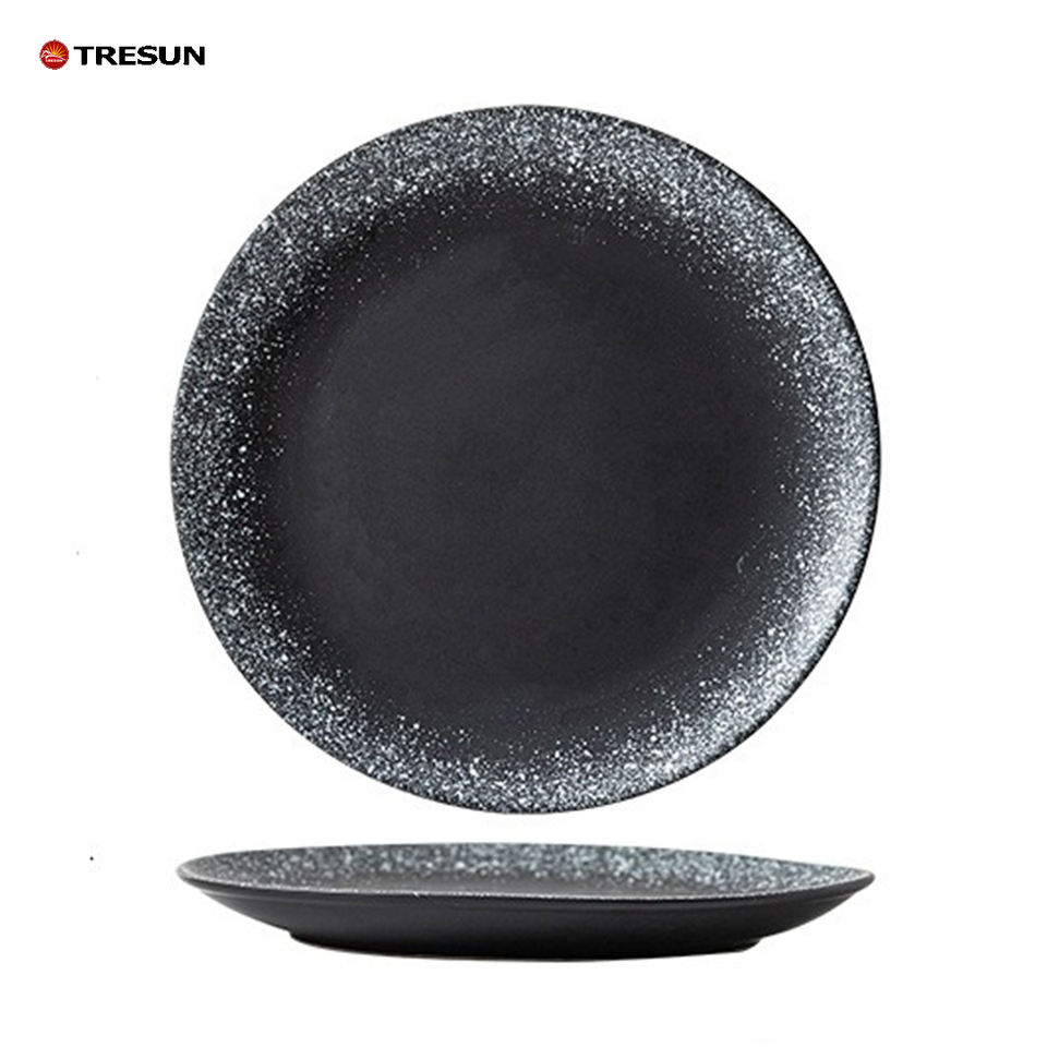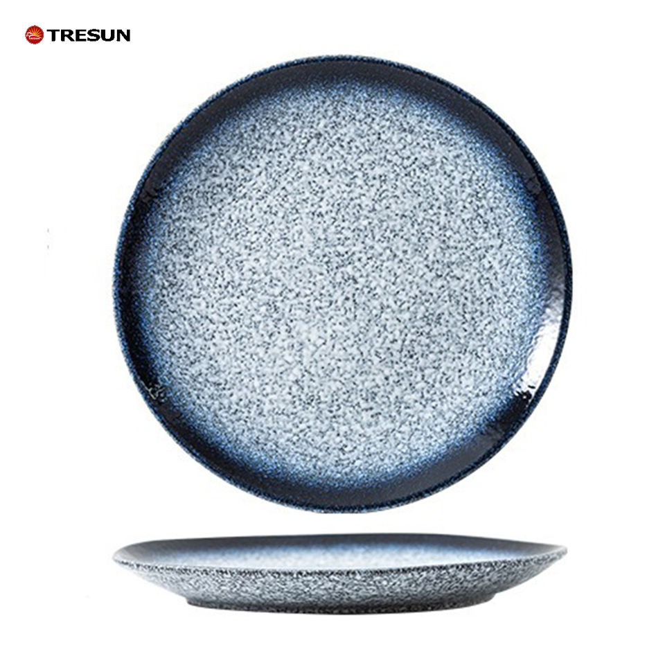 Rustic Ceramic Plate Japanese Style Vintage Stoneware Dish Glazed Tableware for Sushi and Snacks